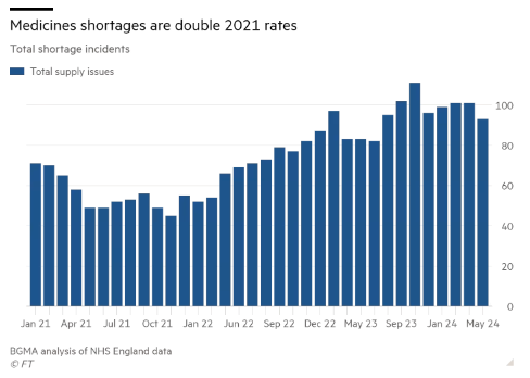 he analysis of figures from NHS England and the Department of Health and Social Care, the first of its kind by the BGMA, reveal the extent of drug scarcity across the country. The Nuffield Trust think-tank recently warned that shortages had become a “new normal”.