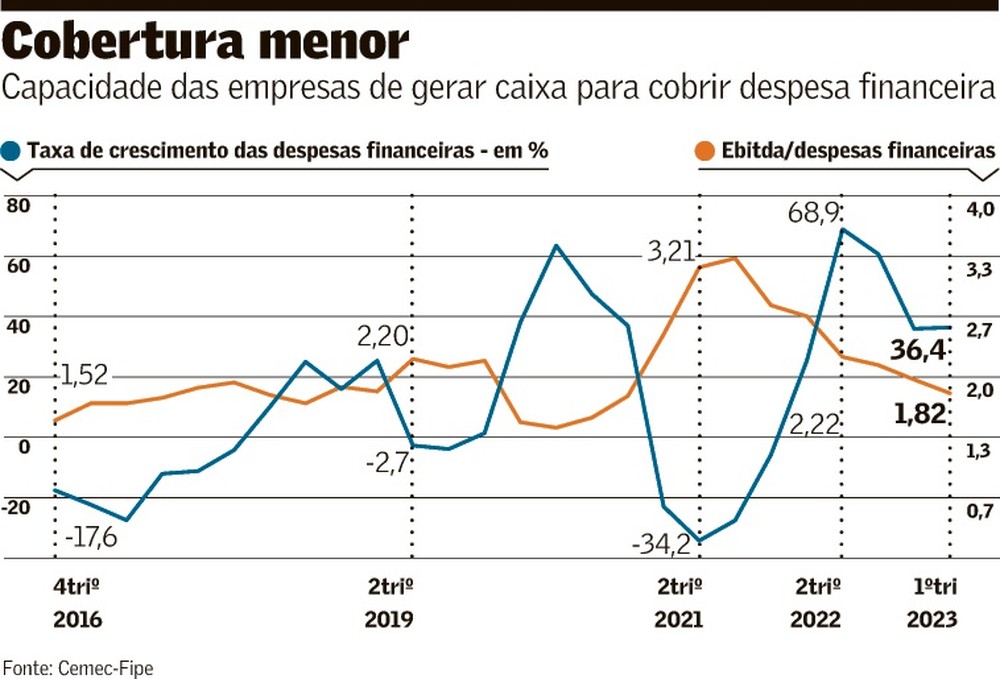 Na visão de Rocca, é provável que a capacidade de cobertura das despesas continue caindo nos próximos meses, “até que a esperada queda das taxas de juros tenha impacto relevante nas despesas financeiras”.