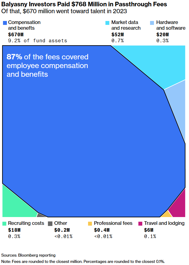 “Não há limite para a quantidade de despesas de repasse que podem ser cobradas”, escreveu a Point72 em um registro de 2020, o primeiro ano em que utilizou essa linguagem. Espera-se que as taxas aumentem à medida que o desempenho do fundo melhora, mas “elas devem ser substanciais independentemente do desempenho.”
