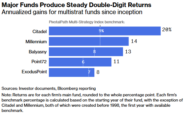 Representantes da Millennium, Point72 e ExodusPoint recusaram-se a comentar para esta matéria. Balyasny afirmou que possui uma longa história de entregar retornos consistentes de dois dígitos.