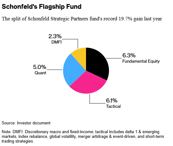 Mesmo assim, no auge da crise, precisaram seguir um caminho diferente. Afastaram traders com desempenho fraco, e a exposição da Schonfeld a operações equity long-short como proporção do negócio total diminuiu.