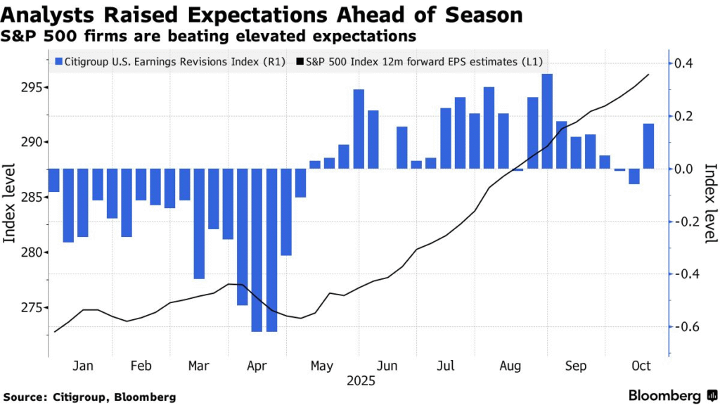 Resultados acima do esperado são uma fonte potencial de confiança para o mercado durante o vácuo de dados econômicos causado pelo shutdown do governo dos EUA, disse Marija Veitmane, chefe de pesquisa de ações na State Street Global Markets.