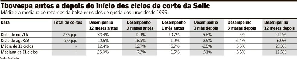 “A gente sempre tem a percepção de que o mercado se antecipa ao início do corte de juros e, de fato, isso ocorre; mas é bem verdade também que tem uma segunda pernada, se esse movimento de corte de juros do Copom for prolongado”, afirma o especialista do Santander.