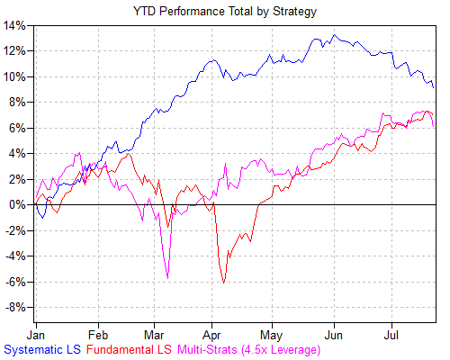 Outras estratégias proeminentes de hedge funds, como ações fundamentalistas e multiestratégia, apresentaram ganhos consistentes no mesmo período, conforme o relatório. Felizmente para os fundos quant, o desempenho até o início do verão havia sido forte, de modo que os retornos anuais do setor ainda superam, em média, os dos gestores discricionários.