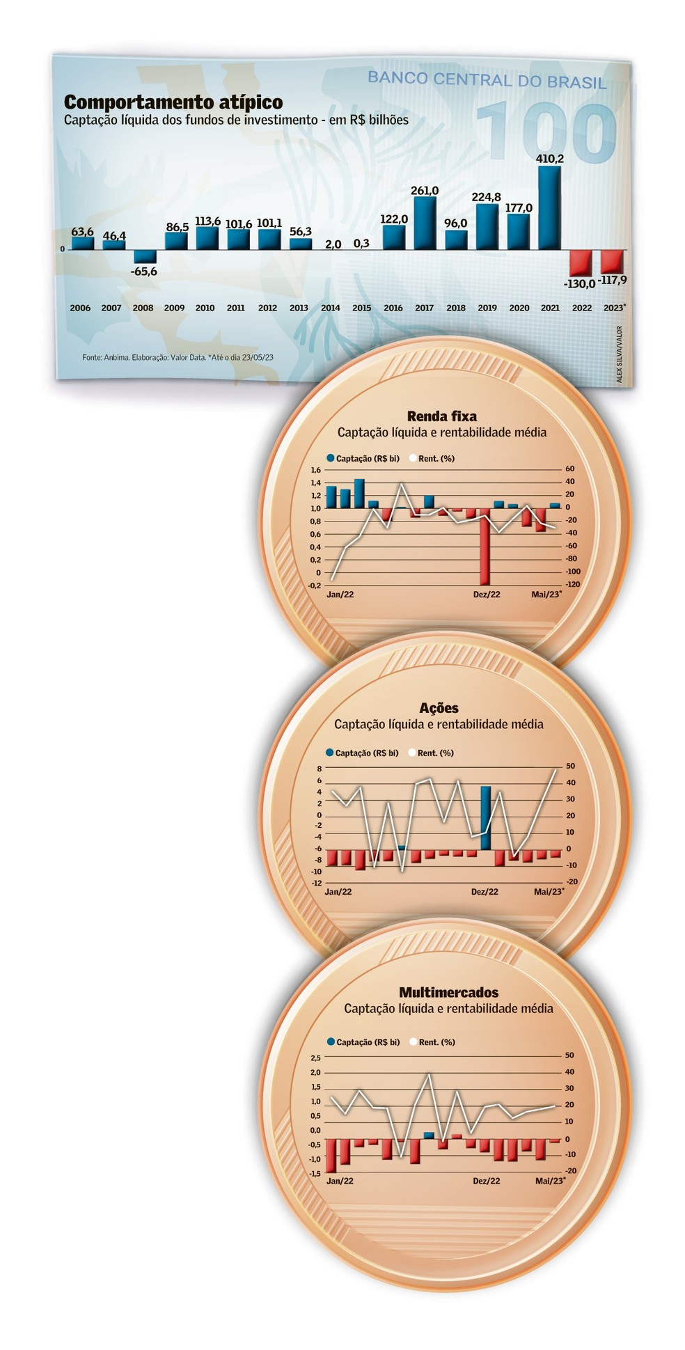 “A hora da virada pode estar começando”, afirma Philipe Biolchini, CIO da Bradesco Asset Management (Bram). Ele embasa a sua percepção em fatores como a expectativa de queda de juros no Brasil e manutenção das taxas nos EUA, possíveis surpresas positivas com a queda de preços de alimentos devido à boa safra, normalização das cadeias produtivas e possibilidade de queda nas commodities. O risco, considera, é de que a inflação não recue conforme o esperado, o que inviabilizaria o cenário mais positivo.