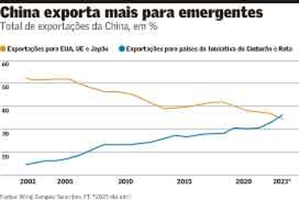 Pela primeira vez na história, no início deste ano a China exportou mais para o mundo em desenvolvimento – representado pelos países que fazem parte da Iniciativa do Cinturão e da Rota (BRI, na sigla em inglês) – do que para os EUA, a União Europeia e o Japão juntos, segundo dados coletados pela corretora chinesa Dongwu Securities.