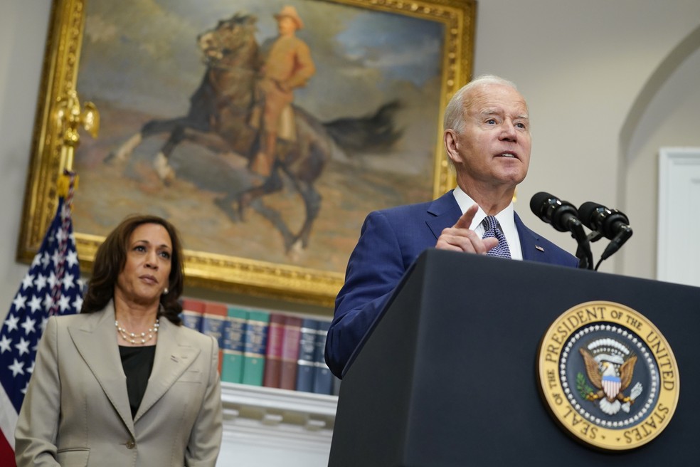 Biden faz pronunciamento sobre direito ao aborto ao lado da vice Kamala Harris — Foto: Evan Vucci/AP