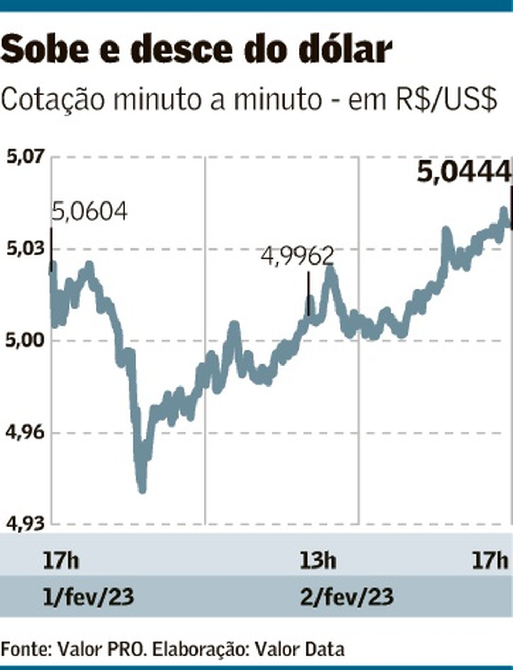 Depois de operar boa parte da sessão de ontem abaixo de R$ 5, no menor nível desde junho de 2022, o dólar recuperou parte das perdas contra o real. A mínima do dia, de R$ 4,9417, acabou ficando para trás e, ao longo da tarde, a moeda americana ganhou fôlego para fechar cotada a R$ 5,0444, em queda de 0,32%.