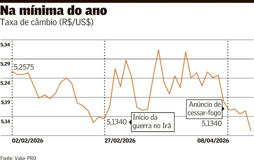 O acordo entre Estados Unidos e Irã por um cessar-fogo de duas semanas melhorou a percepção global de risco e beneficiou moedas ao redor do globo, em especial entre os mercados emergentes, ainda que alguma cautela siga no ar entre os investidores. No câmbio doméstico, o dólar apagou toda a apreciação acumulada ao longo de março frente ao real, o que levou a divisa americana ao menor nível em quase dois anos, apesar de o fluxo cambial ter indicado uma saída relevante de capital do Brasil no mês passado.