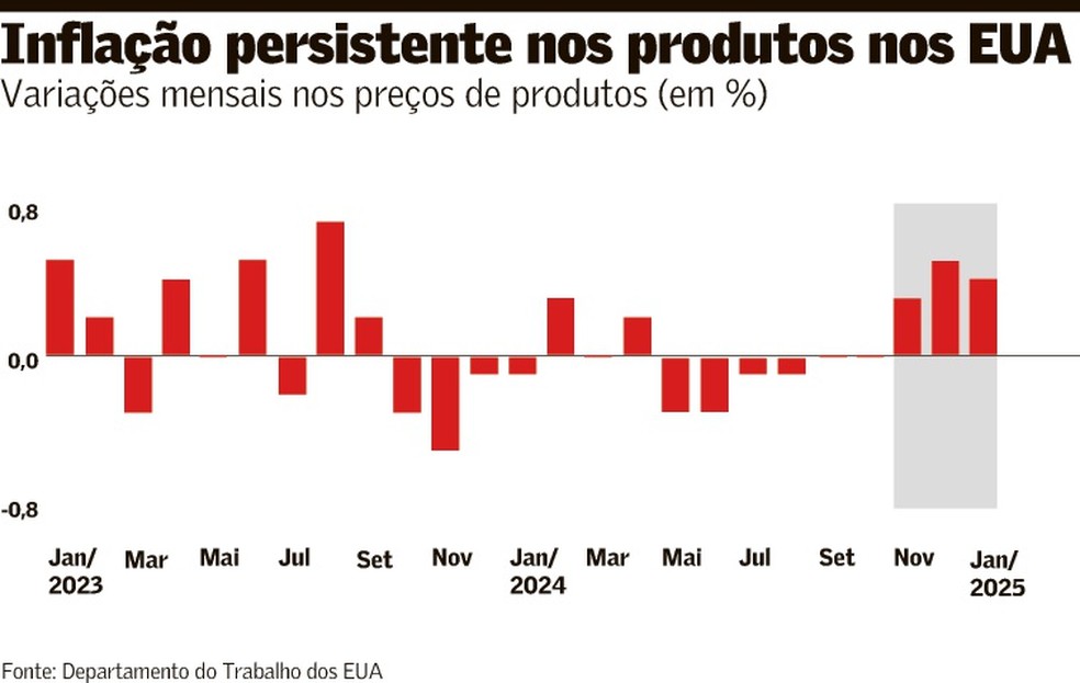 Famílias de baixa renda, que gastam uma parcela maior de seus orçamentos em bens do que os ricos e tendem a favorecer as importações mais baratas, sofrerão o maior impacto. Economistas do Bank of America e BNP Paribas preveem que o Índice de Preços ao Consumidor (IPC) de fevereiro, a ser anunciado hoje, mostrará o primeiro impacto das tarifas – em particular, as taxas adicionais sobre itens como móveis, roupas e eletrônicos vindos da China.