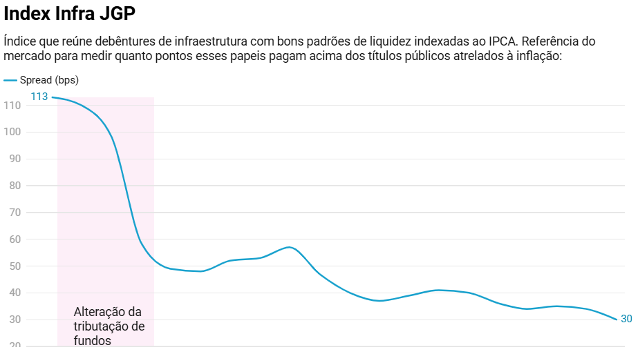 Desde então, o spread médio das debêntures de infraestrutura atreladas ao IPCA – referência para o mercado de CRIs – caiu de 110 para 30 pontos-base (1,10 ponto percentual para 0,30 p.p. acima do Tesouro IPCA +), segundo dados do Índice Idex Infra da JGP.
