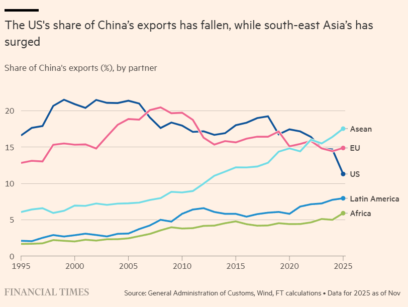 O crescimento das exportações da China para o sudeste asiático é uma das características mais marcantes da nova ordem comercial — e uma que está sendo examinada de perto por sua relação com a guerra tarifária de Trump.