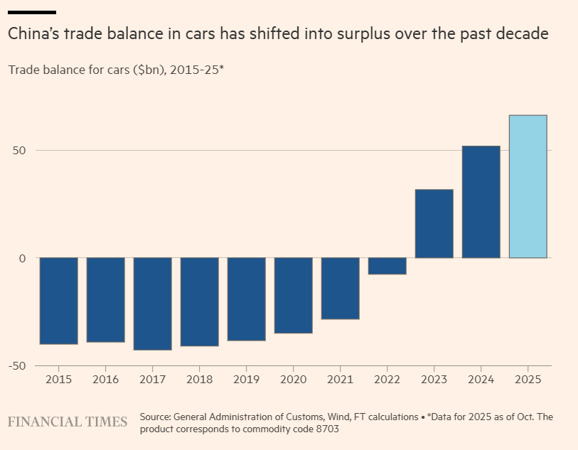 Esse é um ponto de virada extraordinário em relação a apenas três anos atrás, quando a China tinha um déficit com o resto do mundo em automóveis. A China só superou o Japão como maior exportador de automóveis do mundo em 2023.