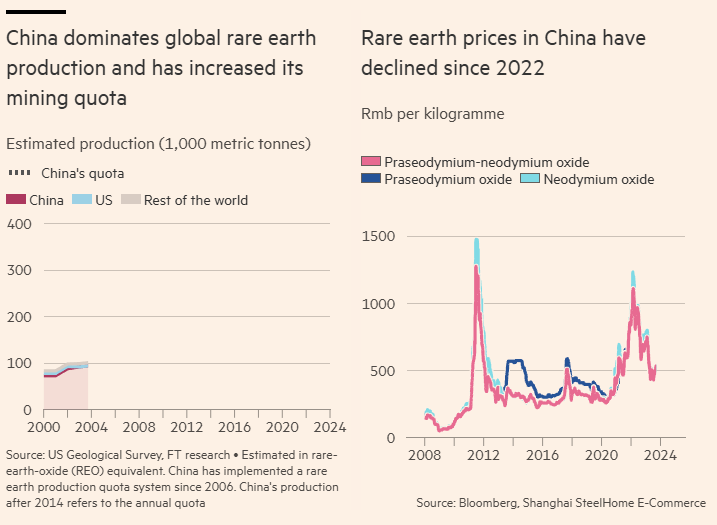 À medida que mineradoras rivais nos EUA e na Austrália entravam em operação, Pequim aumentava as cotas de produção, mantendo os preços baixos apesar da crescente demanda da indústria de veículos elétricos, e reduzindo os lucros tanto de mineradoras ocidentais quanto chinesas.