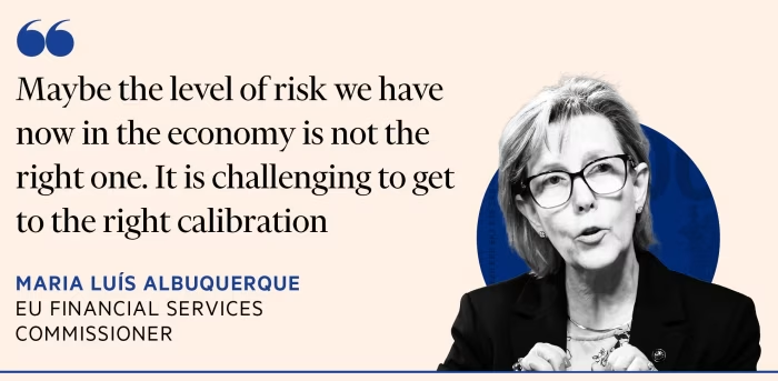 “Talvez o nível de risco que temos hoje na economia não seja o ideal”, reconhece a comissária europeia de serviços financeiros, Maria Luís Albuquerque, em entrevista ao Financial Times, acrescentando que “é um desafio encontrar a calibragem correta”.