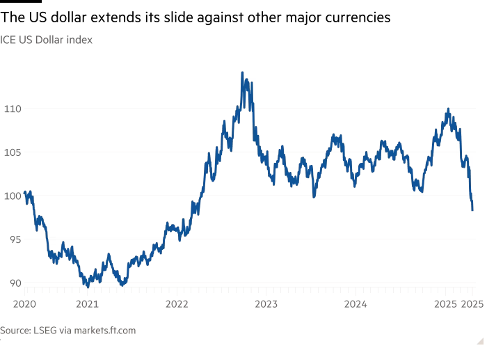 A fuga de ativos denominados em dólar na segunda-feira também refletiu preocupações mais amplas sobre a crescente volatilidade na formulação de políticas dos EUA, disse Grey. “Trump é imprevisível, não se pode confiar nele. O que muitos estrangeiros estão interpretando com Trump sendo eleito duas vezes é que os próprios Estados Unidos não são confiáveis nem confiáveis na mesma medida em que foram por muitas décadas.”