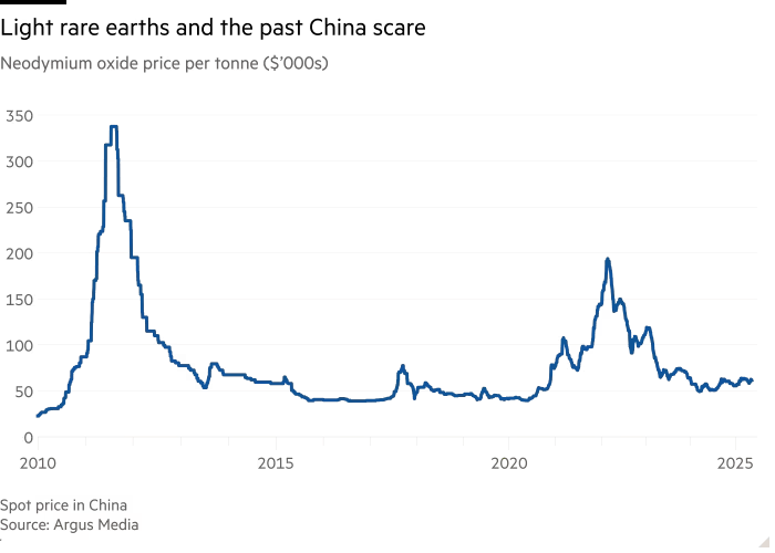 A questão ganhou destaque após a ameaça da China, em 2010, de cortar as vendas de elementos de terras raras ao Japão, embora não esteja claro se Pequim de fato interrompeu as exportações. Os preços à vista das chamadas terras raras “leves”, que são mais amplamente comercializadas, dispararam como esperado. No entanto, os controles foram enfraquecidos pelo contrabando para fora da China — províncias ricas em mineração foram notoriamente negligentes na aplicação das restrições — somado ao aumento da oferta de países como a Austrália e a uma decisão da Organização Mundial do Comércio (OMC) contra a China em 2014. A China reaprendeu a velha lição do mercado de commodities: o melhor remédio para preços altos são os próprios preços altos, e que manipular a oferta por alavancagem política traz o risco de perder o domínio do mercado.