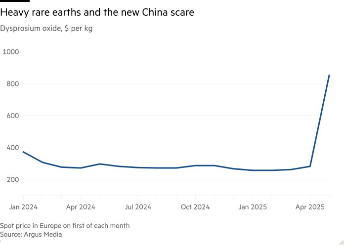 Os materiais envolvidos são as chamadas terras raras médias e pesadas, que são mais difíceis de extrair e processar. Especialistas da indústria afirmam que aumentar a oferta a partir de outros locais deve levar anos, assim como a adaptação das cadeias de suprimento de veículos elétricos ou outras indústrias para utilizar outras tecnologias. Os preços das terras raras pesadas, como o disprósio, dispararam após o anúncio das restrições.