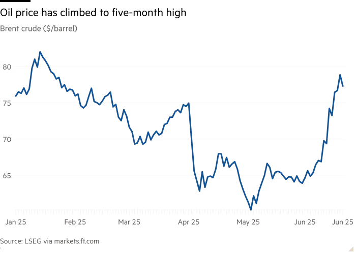Os preços do petróleo já subiram cerca de 10% desde que Israel lançou seu primeiro ataque surpresa ao Irã, há 10 dias. No entanto, os preços globais do petróleo bruto ainda estão abaixo dos níveis de janeiro, principalmente porque a oferta da região ainda não foi afetada.