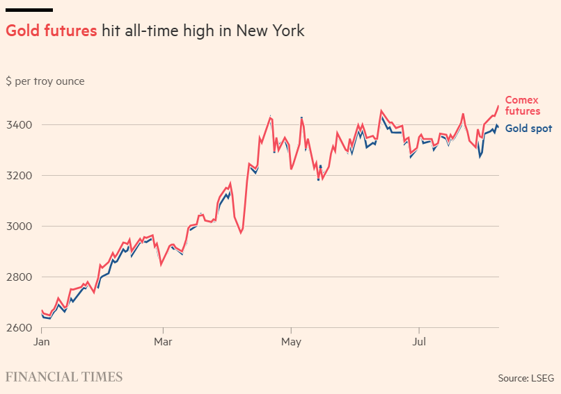 Em um sinal da disrupção causada, os contratos futuros de ouro dos EUA na bolsa Comex, em Nova York, divergiram fortemente dos preços spot, negociando com um prêmio de mais de US$ 100 por onça na sexta-feira.