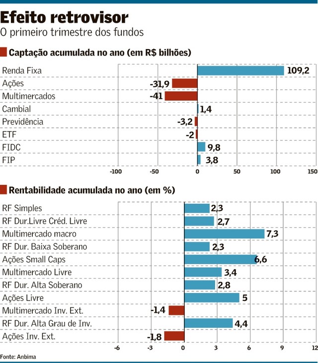 Depois de o investidor migrar em massa de estratégias de maior risco para a renda fixa à medida que os juros subiam, agora talvez fique a sensação de ter deixado dinheiro na mesa. Quem saiu dos multimercados macro, fundos em que os gestores balizam suas posições conforme os diversos cenários econômicos, vai olhar pelo retrovisor e ver retornos médios de 7,3% no primeiro trimestre, ou 304% do CDI, segundo a Anbima.