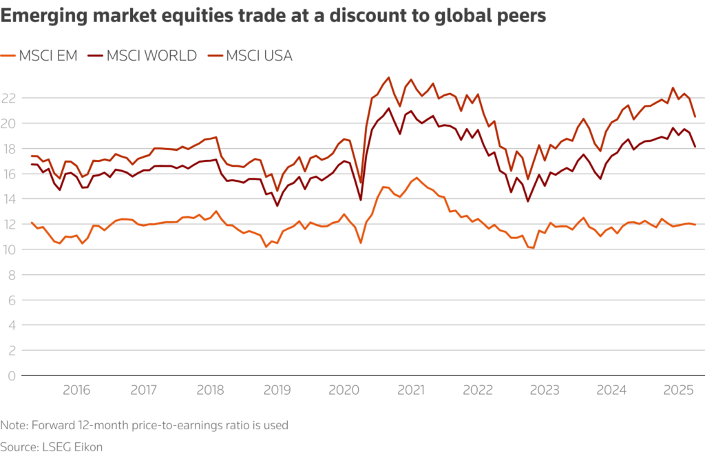 Os fundos de ações de mercados emergentes estão liderando o desempenho global neste ano, impulsionados por avaliações atrativas, anos de baixa exposição por parte dos investidores e pelo alívio nas pressões econômicas após a pausa nas tarifas anunciada pelo presidente dos EUA, Donald Trump.