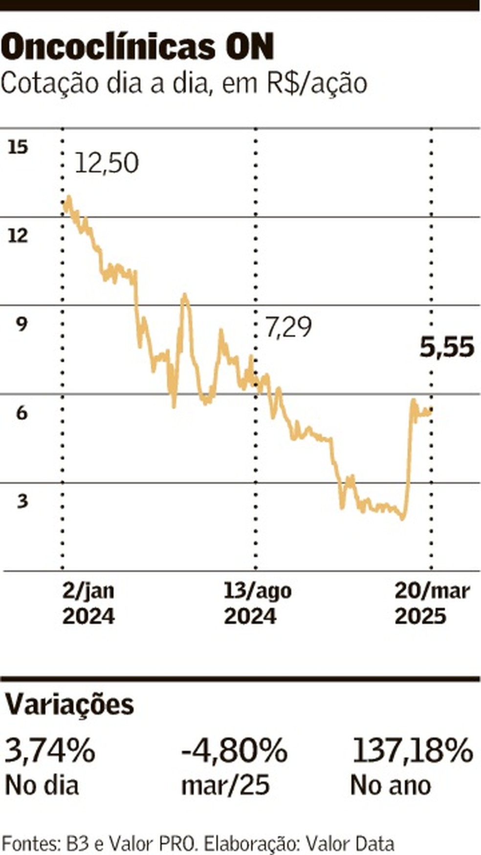 Em maio do ano passado, a OncoclínicasCotação de Oncoclínicas fez um aumento de capital de R$ 1,5 bilhão – R$ 1 bilhão veio do Master e outros R$ 500 milhões do fundador que captou esses recursos do próprio banco. As novas ações foram emitidas a R$ 13, um prêmio quase 75% sobre o valor de tela na época. O vendedor foi o Goldman Sachs, que reduziu sua participação de 46% para 36% (essa fatia está dividida em duas partes, entre seu fundo e do cliente dos EUA).