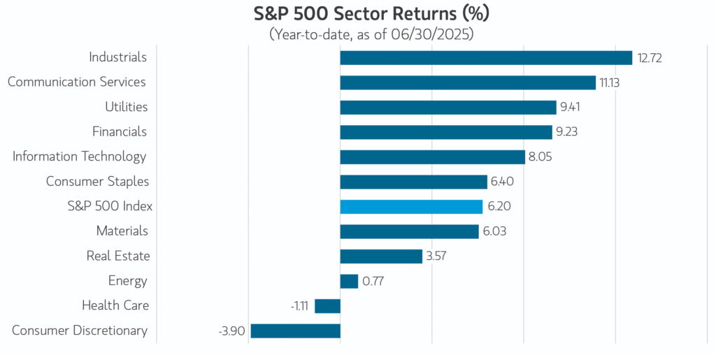 Ao final de junho, o setor de saúde figurava como o segundo com pior desempenho, com um retorno acumulado no ano de -1,11%, em queda juntamente com o setor de consumo discricionário, que é mais cíclico.