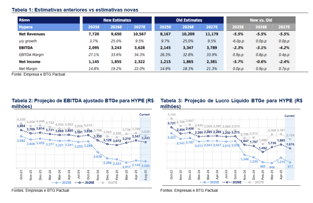 A conclusão do plano de otimização do capital de giro e os resultados do 2T marcam um ponto de virada para a HYPE em termos de estabilidade de receita e margem. Após atualizar nosso modelo com os números do 2T e o guidance mais conservadora da gestão, reduzimos nossas projeções de receita para 2025 e 2026 (ambas -5%). As estimativas de EBITDA permanecem praticamente inalteradas, mas adotamos premissas mais conservadoras para o lucro líquido, considerando a dívida líquida média maior. Apesar de um valuation relativamente atrativo (9x P/L 2026E), mantemos recomendação Neutra. Nosso novo preço-alvo para o final de 2026 é de R$ 29/ação (vs. R$ 26/ação anteriormente). Em nossa visão, faltam catalisadores claros no curto prazo, enquanto a geração mais robusta de fluxo de caixa segue sendo o fator principal para uma visão mais construtiva sobre a ação.