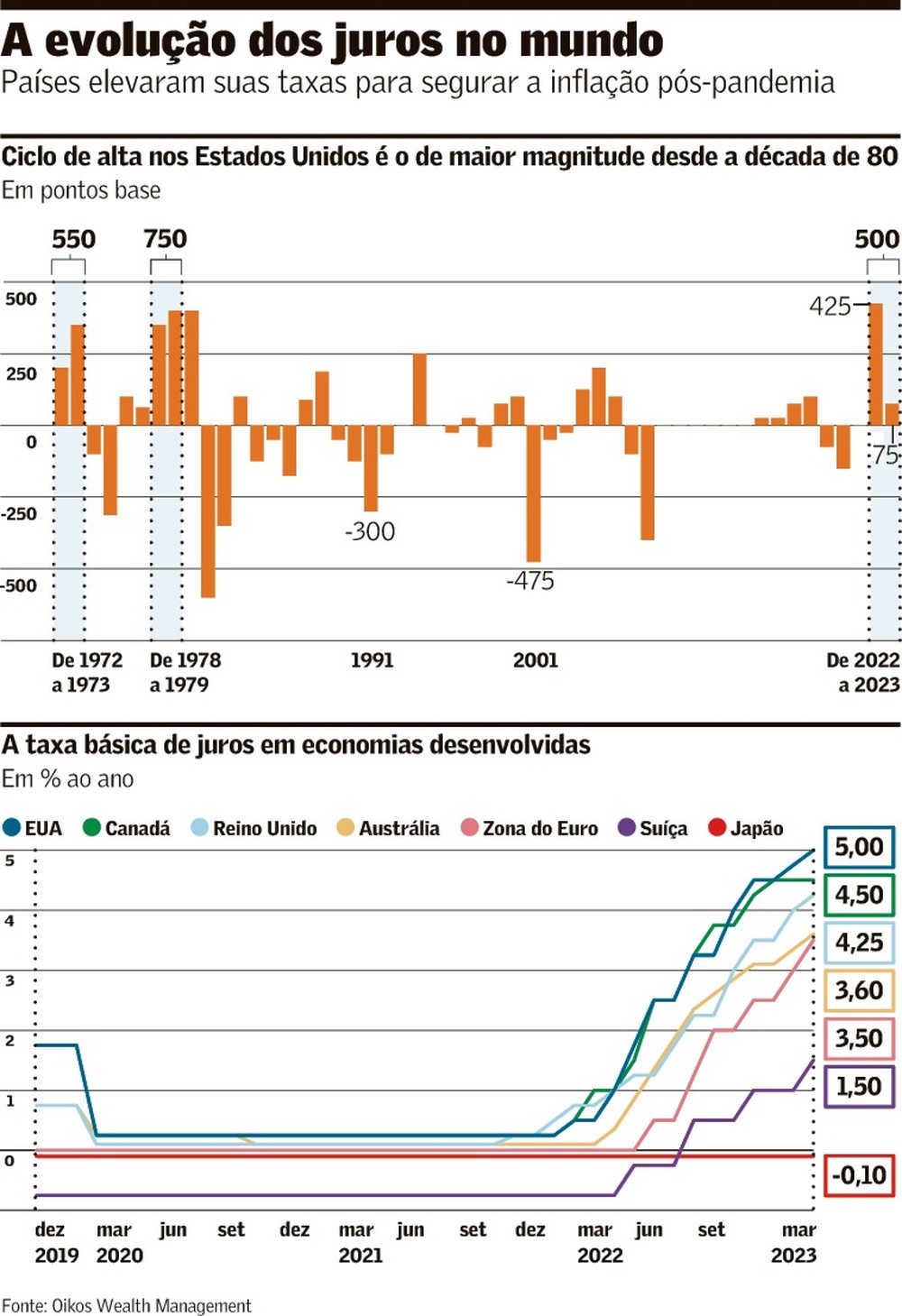 Mollica, do Opportunity, compartilha as mesmas preocupações. “A dúvida é se os bancos centrais vão continuar subindo ou se há efeitos defasados que vão bater nos próximos meses”, afirma. A situação dos bancos regionais americanos – Silicon Valley Bank, Signature Bank, Silvergate e First Republic Bank faliram neste ano, já como reflexo da forte puxada nos juros básicos do país – é outra fonte de incertezas. “Achamos que seria um catalisador da política monetária para a economia real, mas o quadro se estabilizou. Não sabemos se melhorou ou se é calmaria momentânea e voltará a piorar.”