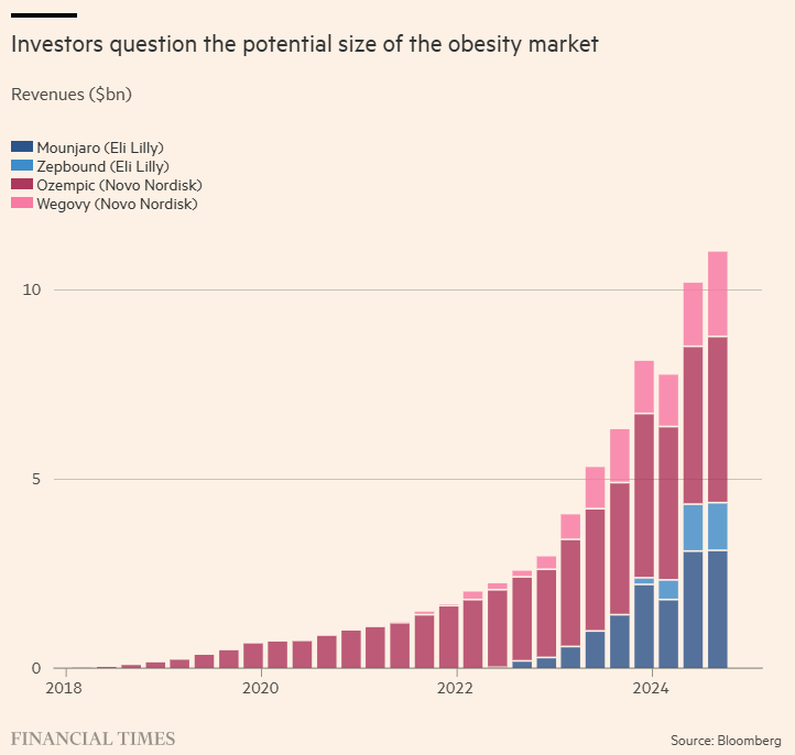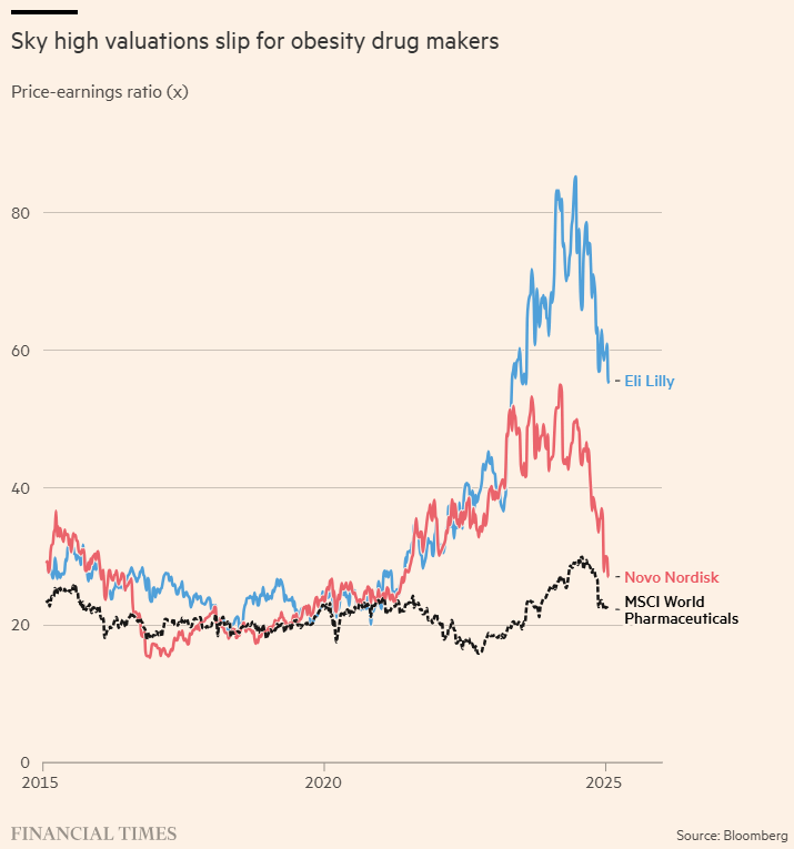 Em poucos anos, o entusiasmo com medicamentos anti-obesidade inovadores tornou a Novo Nordisk a empresa mais valiosa da Europa e a Eli Lilly o maior grupo farmacêutico do mundo. Mas, tão rapidamente quanto surgiu, o apetite dos investidores por esse comércio está diminuindo.