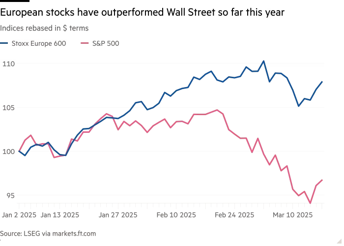 Os investidores fizeram o maior corte já registrado em suas alocações de ações dos EUA em março, à medida que a guerra comercial errática do presidente Donald Trump gerou temores sobre a economia dos EUA e provocou uma forte liquidação em Wall Street.