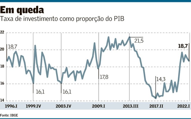 Com isso, a taxa de investimento como proporção do PIB recuou pelo segundo trimestre consecutivo, atingindo 18,7%.