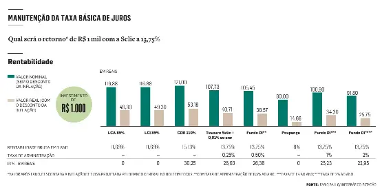 RENDA FIXA. Com a Selic mantida em 13,75%, renda fixa continua uma boa aposta. Um exemplo são os títulos públicos do Tesouro Direto, afirma o gerente de portfólio de alocação da Principal Claritas, Rodrigo Cabraitz. Para ele, o mais recomendável no momento são os com vencimento de até cinco anos.