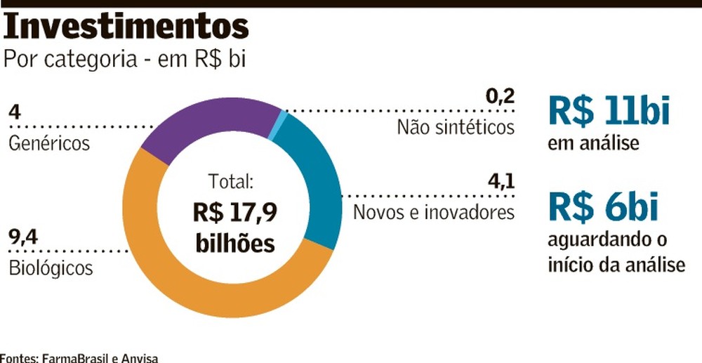 O setor farmacêutico tem aproximadamente R$ 6 bilhões em possíveis investimentos parados na Agência Nacional de Vigilância Sanitária (Anvisa), aguardando análise. Outros R$ 11 bilhões estão sendo analisados, mas sem resposta até o momento.