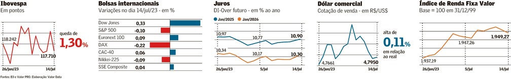 “E, embora não possamos determinar com precisão a taxa neutra, o exercício estima o valor justo do Ibovespa a partir de cenários para juro real, inflação e crescimento real do PIB. O juro real, medido pela NTN-B 2035, encerrou junho em 5,25%, ante 6,2% em março. Vemos espaço para que as taxas continuem caindo, especialmente se o governo conseguir mostrar formas de ampliar as receitas. Além disso, dados macroeconômicos recentes indicam atividade mais forte do que o esperado e números inflacionários mais positivos”, diz.