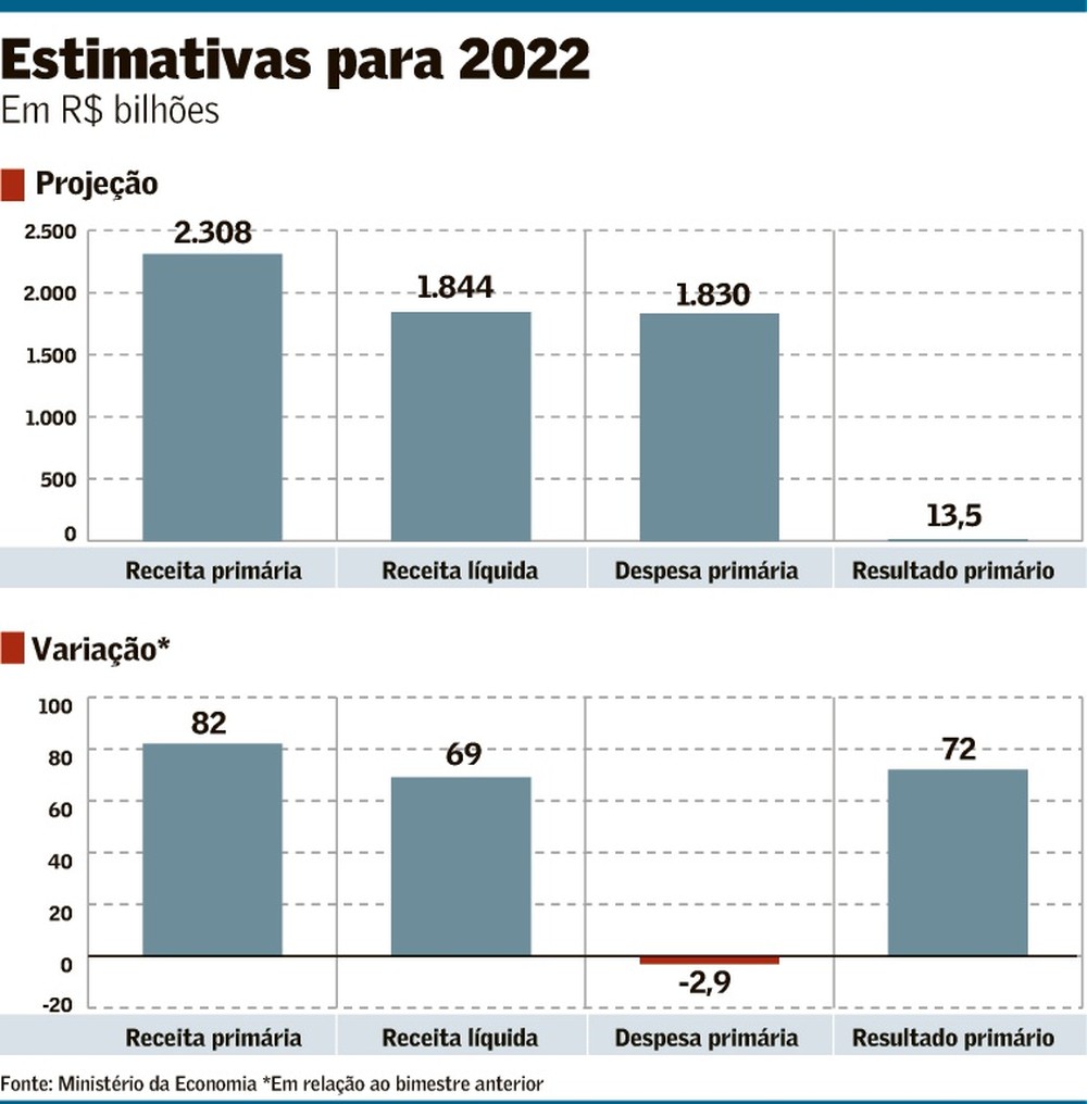 Ao mesmo tempo, apontou que as contas do governo central (Tesouro, Previdência e Banco Central) encerrarão o ano com saldo positivo, algo que não se vê desde 2013. O superávit primário estimado é de R$ 13,6 bilhões, explicado principalmente pelo desempenho das receitas, segundo o Relatório de Avaliação de Receitas e Despesas Primárias.
