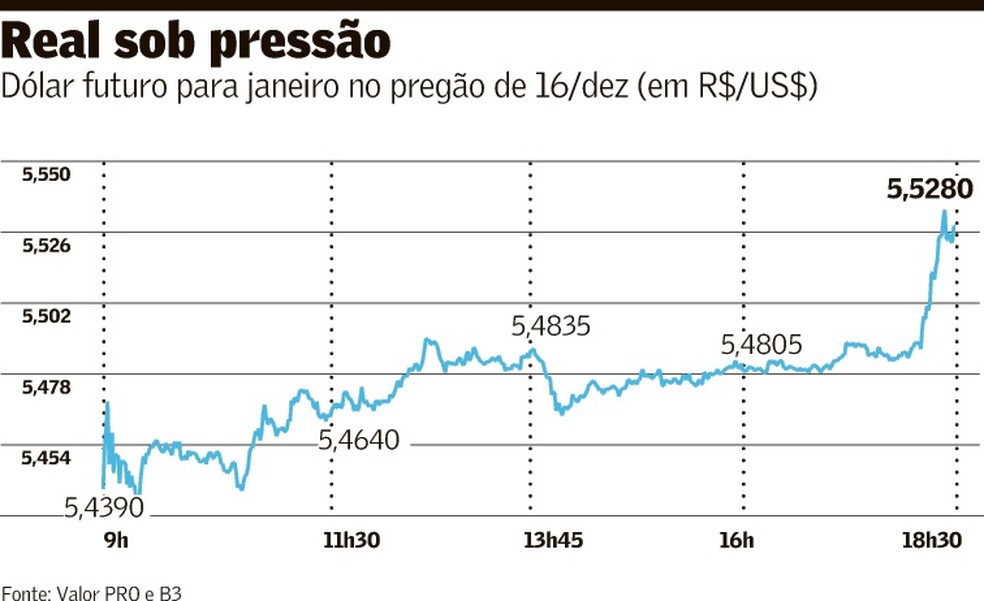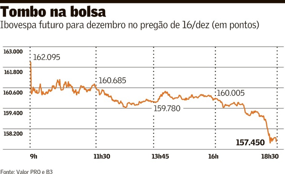 Fechados os mercados à vista de bolsa e câmbio, o estresse se estendeu para os negócios com derivativos, com possível acionamento de “stop loss”, mecanismo que encerra posições em meio a uma mudança no comportamento dos ativos. Isso levou o contrato futuro do Ibovespa para dezembro a cair 3,18% e o dólar para janeiro a avançar 1,77%.