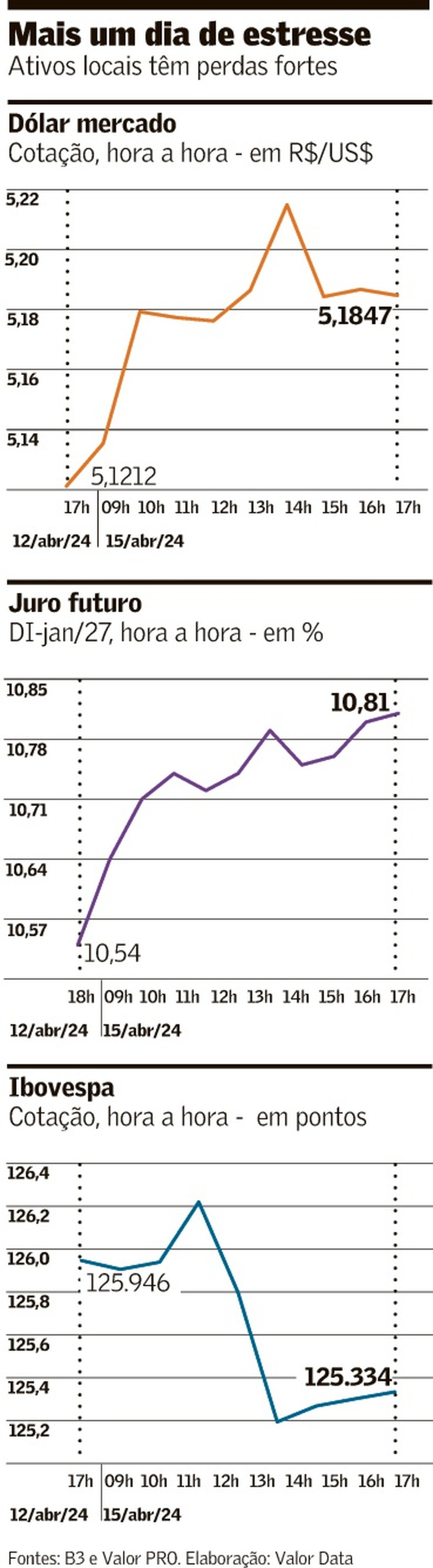 A tempestade perfeita que se formou sobre os mercados locais nos últimos dias ficou ainda mais forte na sessão de ontem e se refletiu no comportamento dos ativos domésticos. As tensões geopolíticas seguiram no radar; as vendas no varejo dos Estados Unidos confirmaram que o Federal Reserve (Fed, banco central americano) está cada vez mais distante de reduzir os juros; e, no Brasil, as preocupações fiscais voltaram ao centro das atenções com a alteração das metas de resultado primário de 2025 e de 2026. A consequência foi um estresse nos ativos domésticos, especialmente nos mercados de câmbio e de juros.