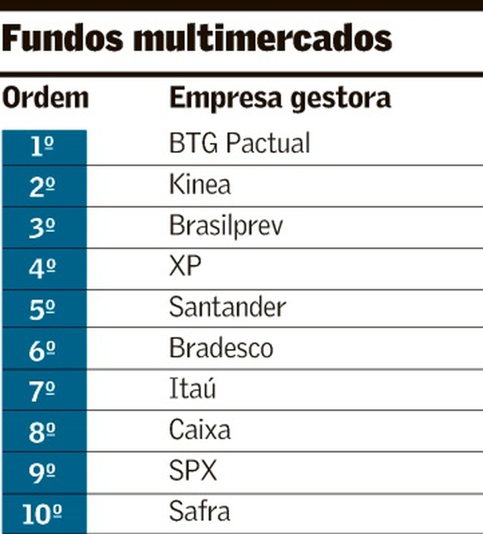 Segundo o boletim de fundos de investimento da Associação Brasileira das Entidades dos Mercados Financeiro e de Capitais (Anbima), nos dez primeiros meses deste ano a captação líquida (entradas menos saídas) dos fundos de previdência multimercados ficou positiva em R$ 14 bilhões, considerando as subcategorias de multimercados livre (R$ 13,3 bilhões) e multimercados juros e moedas (R$ 710,1 milhões). No primeiro caso, os gestores têm liberdade para escolher em quais tipos de ativos vão aplicar os recursos dos cotistas, incluindo renda fixa e renda variável, sempre dentro dos limites estabelecidos pelo regulamento; no segundo, as alocações são em renda fixa (juros) e mercado de câmbio.