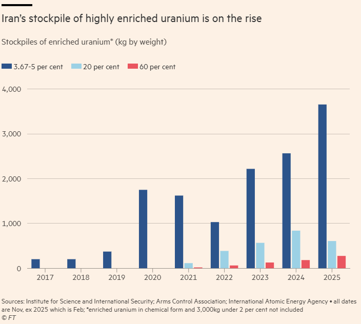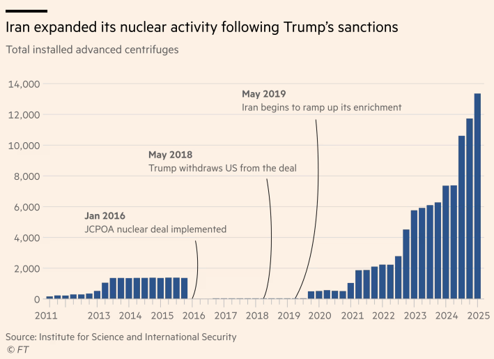 Mas hoje seu estoque, incluindo urânio altamente enriquecido, já ultrapassa 8.200 kg — incluindo 275 kg enriquecidos a 60% até o início de fevereiro — e o país instalou milhares de centrífugas avançadas e desenvolveu conhecimento técnico em pesquisa e desenvolvimento que não pode mais ser desfeito.