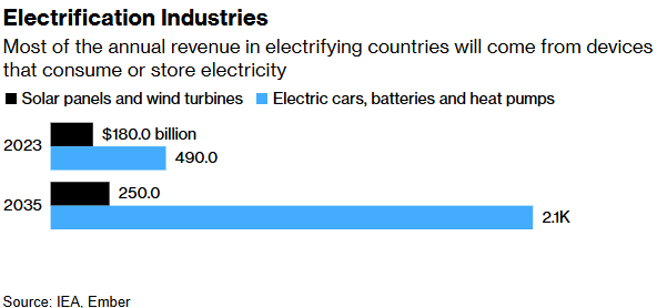 “A eletrificação é hoje a corrida mais relevante” para países que buscam expandir suas economias, afirma Daan Walter, pesquisador da Ember. A eletricidade não apenas contribui para o aumento da eficiência e a redução dos custos operacionais, segundo ele. Indústrias que sustentam a eletrificação — como a fabricação de carros elétricos e a instalação de bombas de calor — também estão crescendo mais rapidamente do que outros setores.
