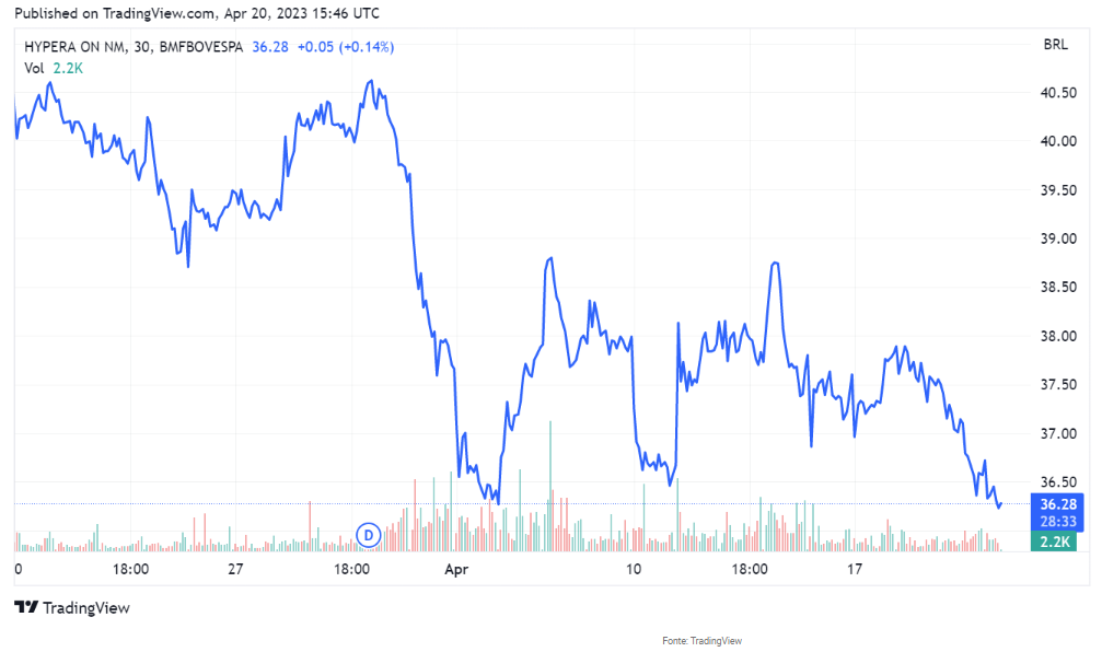 Cálculos do Santander mostram que Hypera seria negociada a 17 vezes o preço sobre o lucro (P/L) em 2023, implicando em uma reavaliação de 12,6x ao valor que as ações eram negociadas, de R$ 37,55, no último dia 19.