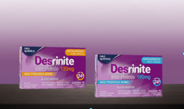 Veja maisA Neo Química apresenta o Desrinite, composto por uma das moléculas anti-histamínicas mais modernas do mercado. O antialérgico à base de fexofenadina é indicado para os sintomas da rinite e urticária.
