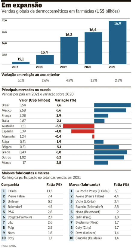 Durante essas décadas, a Adcos se estabeleceu como uma referência em dermocosméticos no país, com um faturamento de R$ 500 milhões no ano passado e planos de crescer 20% a cada ano, o que, neste ritmo, significaria chegar à casa do bilhão até 2028. A previsão da consultoria Close Up é que o faturamento do mercado de dermocosméticos no Brasil seja de R$ 8 bilhões este ano.
