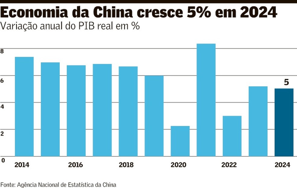A China confirmou na sexta-feira que a segunda maior economia do mundo manteve um ritmo forte de crescimento de 5% em 2024. Mas muitos chineses estão céticos com esses dados.