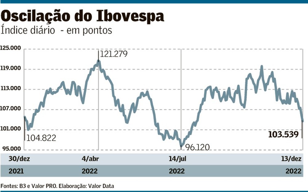 O cenário de indefinições acerca do rumo das contas públicas também foi destacado na ata da última reunião do ano do Comitê de Política Monetária (Copom) do Banco Central. Divulgado ontem, o documento mostrou que os membros do colegiado demonstraram preocupação com as recentes discussões fiscais no país. Os temores do Copom se refletem também entre os participantes do mercado, cujas projeções para a Selic em 2023 têm aumentado. Ontem, o J.P. Morgan elevou a projeção para a Selic no fim de 2023 de 11,5% para 12,75%, com o início dos cortes na taxa básica de juros somente no quarto trimestre do próximo ano.
