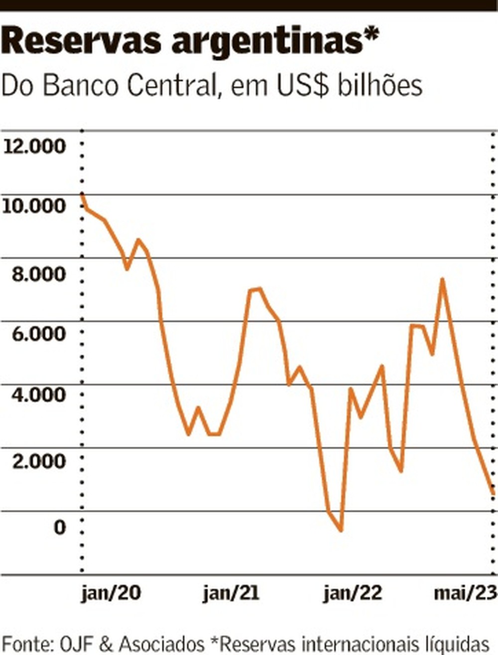 O ministro da Economia e pré-candidato governista à Presidência, Sergio Massa, tenta fechar um novo pacto antes do fim de semana para evitar debilitar ainda mais as reservas internacionais. Se confirmar o pagamento ao FMI nesta semana e outros credores privados em julho, o BC ficaria com uma reserva negativa entre US$ 5,5 bilhões e US$ 6 bilhões.