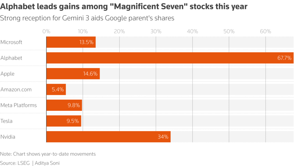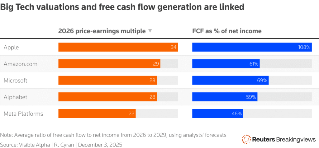 Gigantes da tecnologia como Alphabet (GOOGL.O), abre em nova aba, Meta (META.O), abre em nova aba, e Oracle (ORCL.N), abre em nova aba, correram para os mercados de dívida nos últimos meses para acompanhar a corrida da Inteligência Artificial, aumentando o desconforto em relação a uma possível bolha de IA.