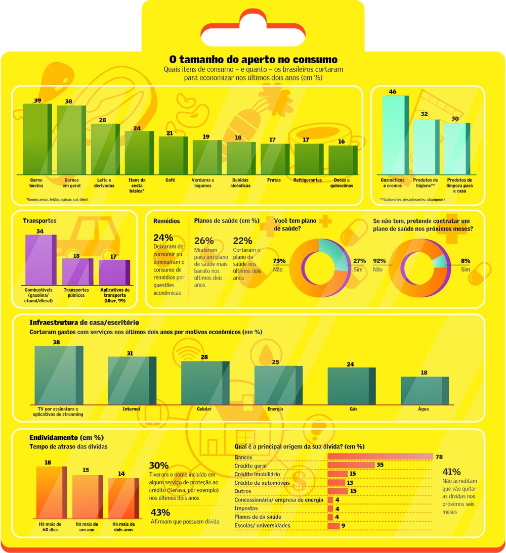 Seja como for, a pesquisa indica que os consumidores pisaram fundo nas restrições, mesmo em relação aos produtos mais essenciais. Em outro dado relevante, por exemplo, o levantamento mostra que 24% dos entrevistados cortaram despesas com artigos da cesta básica, como arroz, feijão, óleo e sal. “Essas são contenções entre as mais profundas”, aponta Dorgan Filho, do Travessia. “Mesmo porque atingem itens elementares de consumo.”